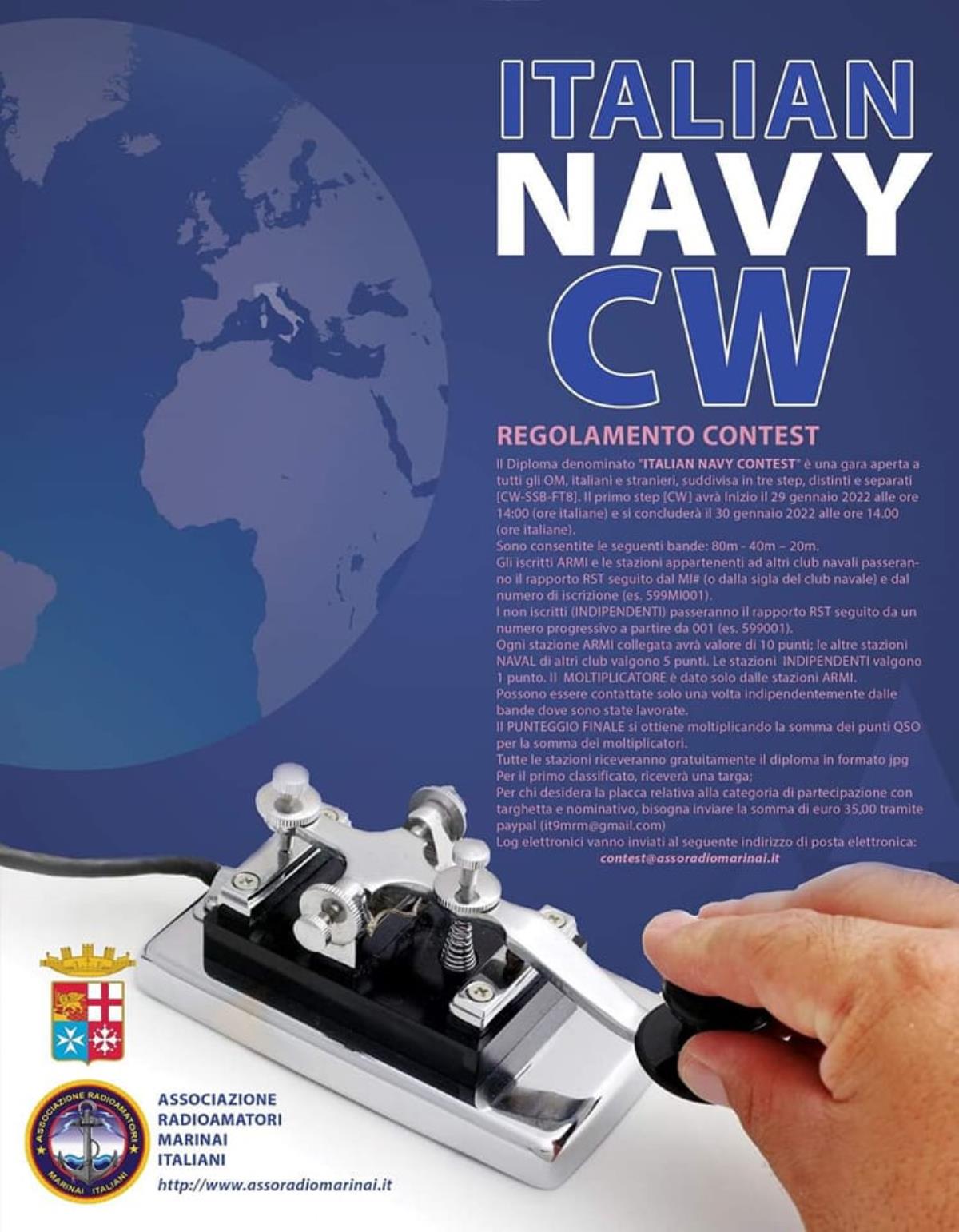 05/01/2022 Preparatevi al prossimo appuntamento in Radio con l'ITALIAN NAVY CW Contest.Il primo di tre appuntamenti con il contest dell'ARMI.https://www.assoradiomarinai.it/